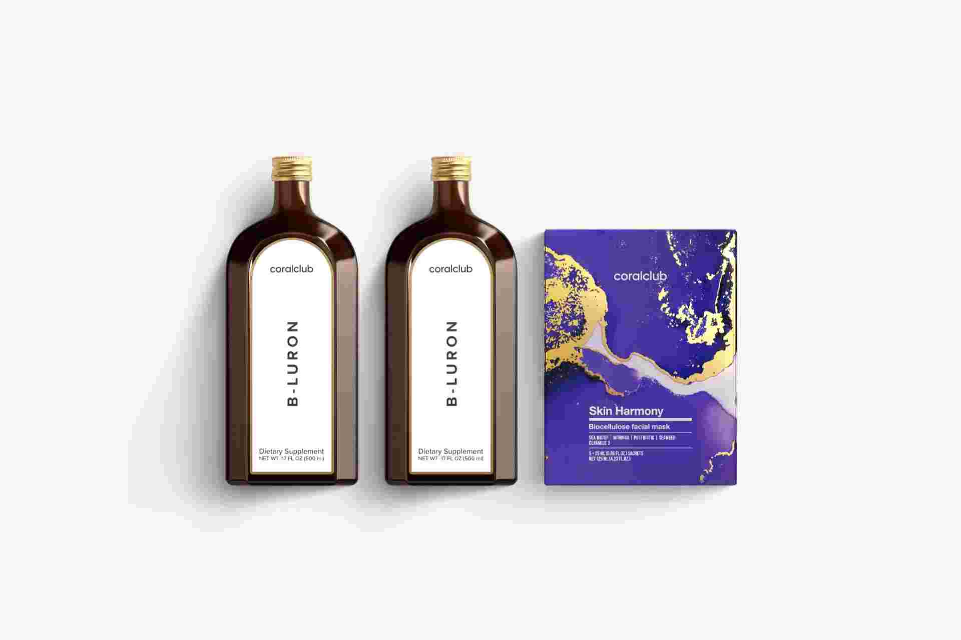 B-Luron (2 x 500 ml) + Skin Harmony Biocellulose Facial Mask (5 szt.)